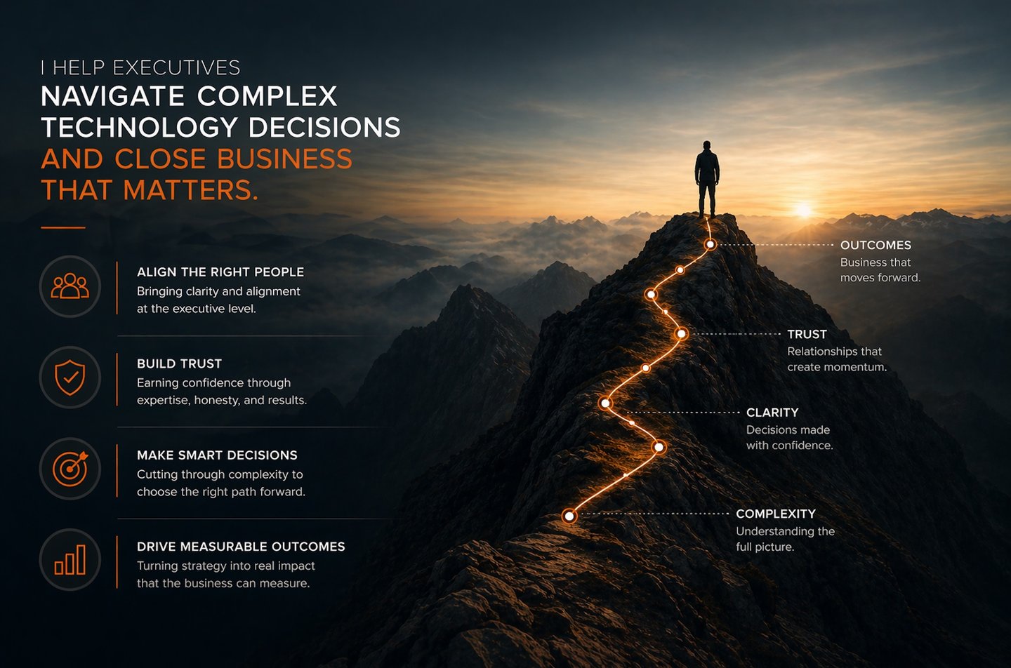I’m an enterprise sales executive helping organizations navigate complex decisions, align stakeholders, and move forward with clarity. My work sits at the intersection of trust, structure, and disciplined execution. In enterprise sales, the biggest risk is not choosing the wrong solution. It’s failing to reach a decision at all.